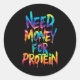 Sticker Rond Drôle Besoin D'Argent Pour Protein Exercice Joke C