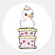 Sticker Rond Drôle Canard sautant d'un gâteau