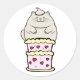 Sticker Rond Drôle chat gras sautant d'un gâteau