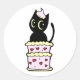 Sticker Rond Drôle chat noir sautant d'un gâteau