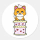 Sticker Rond Drôle chat orange sautant d'un gâteau
