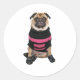 Sticker Rond Drôle chien carlin habillé avec pull et bottes