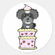 Sticker Rond Drôle chien schnauzer sautant d'un gâteau