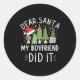 Sticker Rond Drôle Citation de Noël Cher Père Noël Mon Boyfri