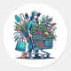 Sticker Rond Drôle dame avec panier rempli de Plantes