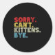 Sticker Rond Drôle Désolé de ne pas pouvoir Kittens Bye. Amoure