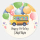 Sticker Rond Drôle dinosaure Retour À L'École Balloon Bus Anniv