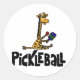 Sticker Rond Drôle Giraffe Jouer Pickleball Cartoon
