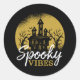 Sticker Rond Drôle Halloween Haunted House Horreur Vibes Éffray