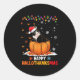 Sticker Rond Drôle Tuxedo Chat sur Citrouille Hallothanksmas Ha