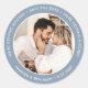 Sticker Rond Dusty Blue Modern Mariage Photo Enregistrer La Dat