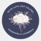 Sticker Rond Dusty Rose blanc Floral Navy Mariage bleu