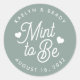 Les stickers de faveur de mariage frais minty comportent "ment to be" en écriture blanche accentuée de coeurs, sur un arrière - plan vert sauge poussiéreux. Personnalisez avec vos noms et votre date de mariage.
