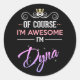 Bien sûr, je suis génial Je suis Dyna en dégradé blanc et rose violet mélangé sans et des lettres de police cursive avec des parchemin fleuris et des ornements d'étoiles et surmonté d'une couronne d'or.