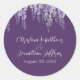 Ces autocollants romantiques à fleurs de mariage présentent un violet foncé avec des fleurs de glycine violet aquarelle. Une délicate vigne de glycine et de verdure est représentée sur le dessus.