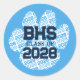 Bébé clair Bleu, Blanc et Marine Initiales de l'école Classe de n'importe quelle année de graduation Pawprint Classic Round Stickers Collection Arrière - plan répétée Personnalisée avec vos diplômés l'abréviation de l'école et l'année (ou vous pouvez taper un prénom à la place)