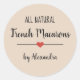 sticker moderne "macarons français" avec une police noire sur un arrière - plan beige agrémenté d'un coeur rouge mignon. Customiser du texte.