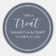 Un autocollant d'étiquette de remerciement simple merci avec un script de calligraphie de mariage, un script de calligraphie de mariage gris, un modèle minimaliste "take-a-treat", un autocollant créatif d'étiquette de faveur de fête, un buffet de bonbons bar cookie mignon, un script minimaliste minimal cercle, un chic fantaisiste personnalisé, des étiquettes créatives élégantes et stylées, une réception simple basique propre et simple, des fournitures de fête de réception de mariage, pour une réception de mariage avec une décoration de typographie de texte blanc.