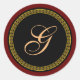 Script initial en or "G" monogramme sur cercle noir avec arrière - plan rouge foncé
