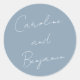 Écriture manuscrite moderne Mariage bleu Dusty Sticker rond classique