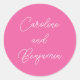 Écriture manuscrite moderne stylé Mariage Noms Sticker rond classique en rose chaud