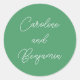 Écriture manuscrite moderne stylé Mariage Noms Sticker rond classique dans Kelly Green