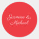 Sticker Rond Écriture manuscrite rouge et blanc Mariage