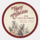 Sticker Rond Écriture moderne Joyeux cône de pin de Noël floral