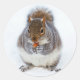Portrait adorable photo d'un écureuil gris attrapé en train de grignoter un écrou dans la neige.