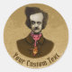 Terrifié Edgar Allan Poe regardant un insecte de l'or grimper sur sa cravate. Croquis de stylo à encre colorée. Texte personnalisé sur le cercle.
