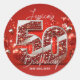 Sticker Rond Élégant 50e anniversaire scintillant rouge et arge
