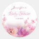 Baby shower Élégant Script Main Aquarelle Fleurs Rose Classic Round Sticker.