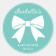 Élégant ruban blanc Bow bleu Turquoise Baby shower neutre genre Classic Sticker rond
