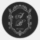 Sticker Rond Elegant Black Floral Crest Monogram Script Wedding