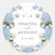 Élégant Bleu Hydrangée Roses Blanches Floral Mariage Classic Round Sticker
