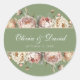 Sticker Rond Élégant Blush Sage Green Peonies Mariage