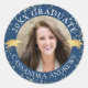 Les autocollants photo personnalisés avec le titre CLASS YEAR GRADUATE et le nom de votre diplômé. Le design comporte des capuchons de graduation métallique en or et des confettis en or dans votre choix de couleur arrière - plan (en bleu) que vous pouvez changer à une couleur d'école ou de couleur préférée dans EDIT. Utilisez comme scellés de l'enveloppe postale de graduation ou de la partie de graduation pour remercier les autocollants. ASSISTANCE : Pour obtenir de l'aide sur la modification/la personnalisation de la conception, le changement de couleur, le transfert de la conception vers un autre produit ou si vous souhaitez coordonner des éléments, contactez le concepteur AVANT DE COMMANDER via l'onglet MESSAGE Conversation Zazzle ou par courriel à l'adresse makeitaboutyoustore@gmail.com.
