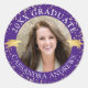 Les autocollants photo personnalisés avec le titre CLASS YEAR GRADUATE et le nom de votre diplômé. Le design comporte des capuchons de graduation métallique en or et des confettis en or dans votre choix de couleur arrière - plan (montré en violet) que vous pouvez changer à une couleur d'école ou de couleur préférée dans EDIT. Utilisez comme scellés de l'enveloppe postale de graduation ou de la partie de graduation pour remercier les autocollants. ASSISTANCE : Pour obtenir de l'aide sur la modification/la personnalisation de la conception, le changement de couleur, le transfert de la conception vers un autre produit ou si vous souhaitez coordonner des éléments, contactez le concepteur AVANT DE COMMANDER via l'onglet MESSAGE Conversation Zazzle ou par courriel à l'adresse makeitaboutyoustore@gmail.com.