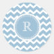 Sticker Rond Elégant Chevron Light Aqua Green Monogramme
