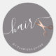 Sticker Rond Elégant ciseaux rose or & gris coiffeuse
