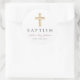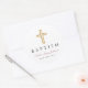 Sticker rond classique personnalisé Elégant Religieux Cross Pink Script Girl Baptism.
