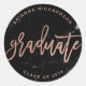 Sticker Rond Élégant diplômé | Marbre noir et or Rose Faux