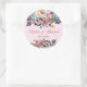 Sticker Rond Élégant Dusty Peach Pink Blue Floral Mariage