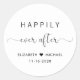 sticker élégant pour vos invitations mariage et réception, enregistrer les dates, les fiançailles, les douches en couple, cartes de remerciement et autres célébrations mariages avec "Happily Ever After" dans une typographie moderne simple et un script élégant avec des swashes, vos prénoms unis par un coeur et votre date mariage.