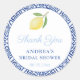 Autocollants de remerciement pour tout événement (illustrés ici pour un mariage mais tous les champs de texte sont personnalisables). Le design présente une simple illustration de citron à l'aquarelle et une bordure de carreaux vintage bleus et blancs.