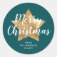 Élégant Sticker Rond Classique de Noël Étoile Verte Joyeux.