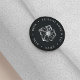 Étiquette votre correspondance d'affaires ou vos produits avec ces autocollants chic qui correspondent à notre suite de marque de logo Hibiscus Flower pour coiffeurs, salons, boutiques ou toute entreprise balnéaire ou insulaire. Des autocollants noirs souples et riches présentent au centre une illustration de fleur d'hibiscus en faux feuille d'argent, avec deux champs de texte courbant autour de l'extérieur, en lettres blanches classiques.