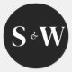 Sticker Rond Élégant Initiales Mariage noir et blanc