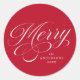 Sticker Rond Élégant Joyeux Calligraphie Script Red Holiday