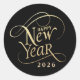 Autocollant moderne de Nouvel An noir pour votre correspondance saisonnière ou la fête de la veille de l'année avec "Bonne Année" écrit dans un élégant script d'or. Ajoutez l'année ou laissez vide.